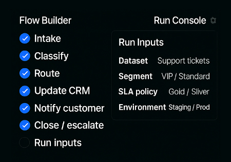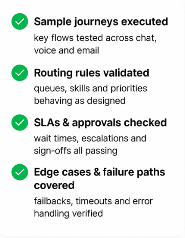 Test rare scenarios—escalations, approvals, failures—before they hit production.